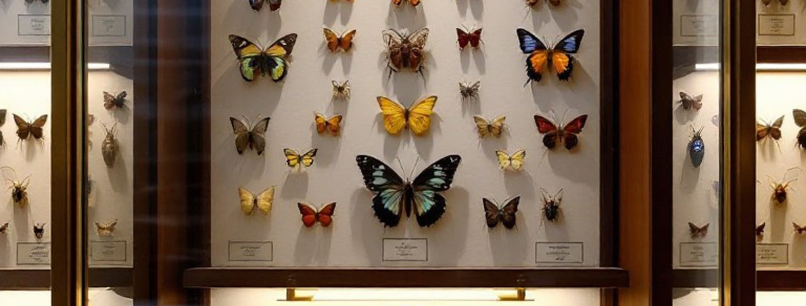 Drawing from the work of the great illustrator, Ernst Haeckel, the captivating beauty of a butterfly's wing, and the timeless elegance of apothecary drawers. Open the doors to a curated cabinet of curiosity and step into the museum archive collection.