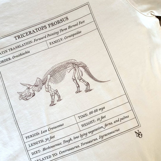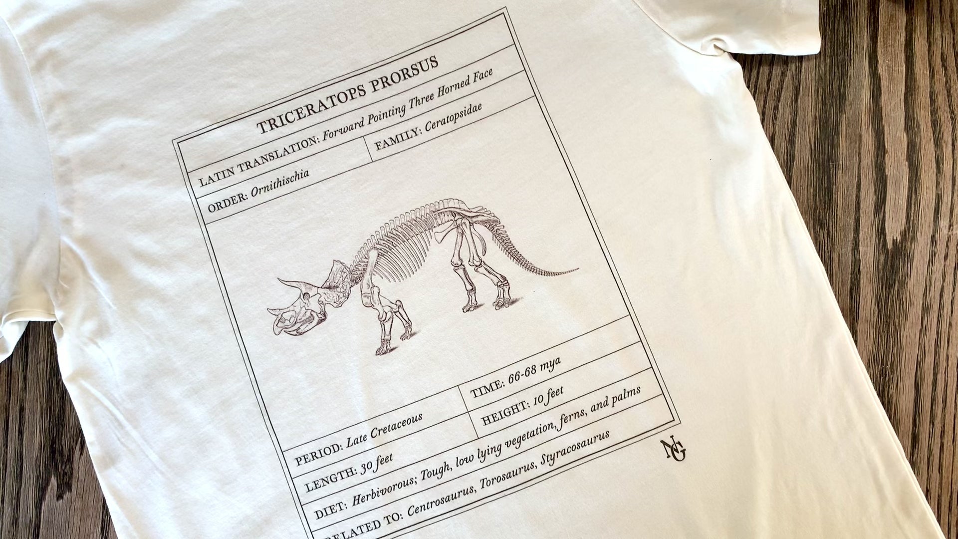 Discover a wearable piece of natural history with our simple, vintage-style Triceratops t-shirt, designed for those who spend weekends wandering museums and dinosaur exhibits.